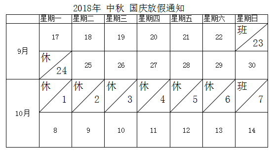 2018中秋、国庆放假通知