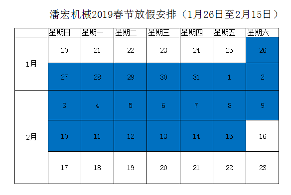 潘宏机械2019春节放假通知